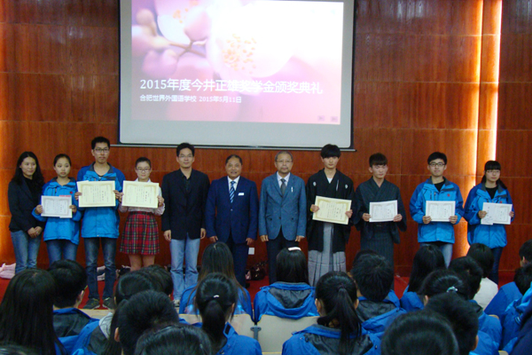2015年5月11日久留米专修学校今井正雄奖学金颁奖典礼在合肥世界外国语学校隆重举行。