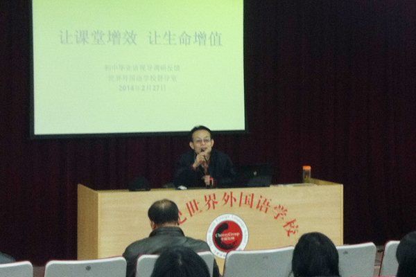 新学期伊始,合肥世外初中毕业班课堂教学调研反馈会议在校信息中心三楼报告厅召开。本次大会由我校教学督导室张发东主任主讲,初中部全体教师参加了本次反馈会议。
