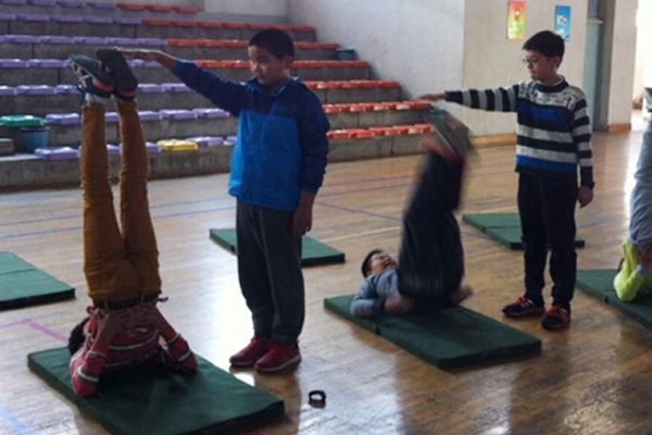 近日在学校体育馆内,我初中部综合组新进年轻体育老师张刘老师进行了初中体育课《肩肘倒立》教学公开课,到场观课的有校督导室张主任、初中部赵宇明主任及初中部综合组的各位老师。