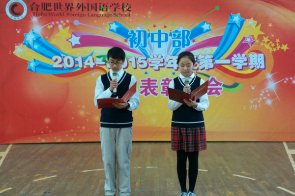 冬日的天空湛蓝,寒意浓浓。我们感受着喜悦的气息,聆听着青春的旋律,迎来了世外初中部2014年度学生表彰大会。大会于12月4日下午2点在学校体育馆内隆重举行。学校分管领导、初中部团委、全体班主任以及生活老师出席大会并为获奖学生颁奖,三位学生主持了属于他们自己的盛会。此次表彰设立了“优秀志愿者”、“学习标兵”、“文明之星”、“文明寝室”等多个奖项,受到表彰的学生面广,设立的奖项涵盖德智体美劳各个方面。