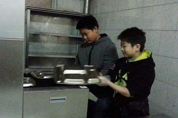 初中部学生生活实践报道之我校餐厅洗碗机