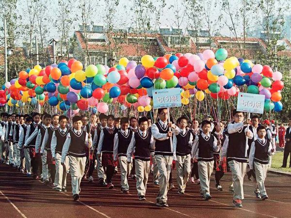 青春的脚步,快如金秋之风;绽放的笑容,灿若春晓之花。青春的号角吹醒了明媚的阳光,迎着秋日的阳光,伴着桂花的浓香,2015年10月12日,运动会的集结号在世外校园内吹响,合肥世界外国语学校第十六届运动会拉开了帷幕,这里有着最别开生面的开幕式,也有着最激动人心的体育赛事,更有着最令人感动的体育精神。开幕式上,彩旗飘扬,鼓号齐鸣,仪仗队、裁判员、运动员们身着各色鲜艳的服装,喊着嘹亮的口号,在雄壮的《运动员进行曲》伴奏下,迈着稳健整齐的步伐进入会场,展现了运动的活力和高昂比赛的热情,充分的展现了朝气蓬勃、文明向上的师生风采。入场式之后是精彩的大型文艺表演。精彩的运动会团体操表演声势宏大、动感十足、精彩纷呈,把开幕式的盛况推向了高潮。