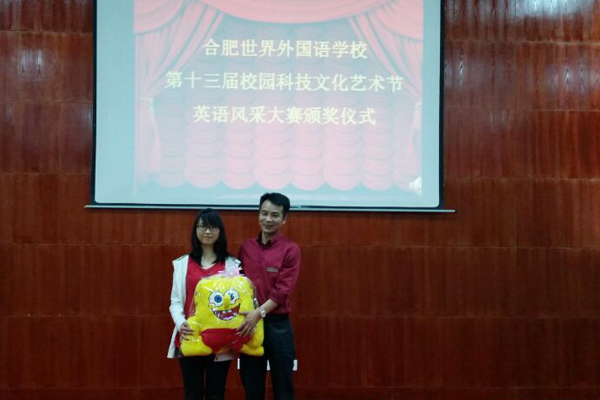 高中部英语组长莫老师与获奖者