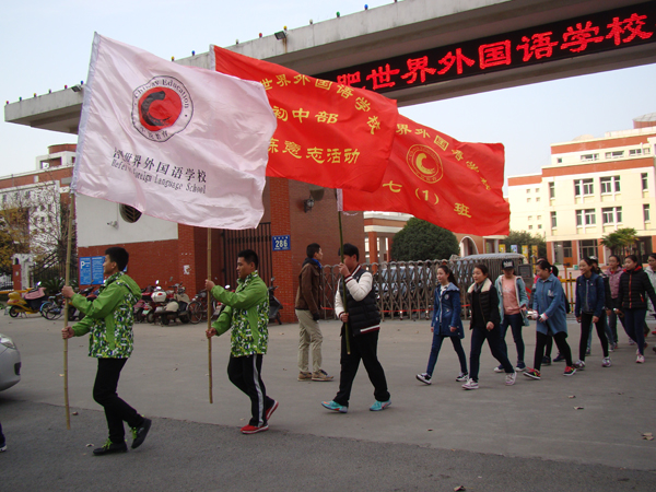 本次远足行动为徒步行走13公里,从学校出发,沿着翡翠路、到达天鹅湖稍作休整后,再返回学校。同学们在老师的带领下,高举旗帜,迈着整齐的步伐,在响亮的口号和欢呼声中,兴高采烈地踏上了“磨砺意志、挑战自我”的远足之旅。穿着校服,轻装上阵的学生排成两路纵队,按照班级次有序行进,浩浩荡荡的队伍如一条舞动的巨龙行进在马路的一侧,形成了一道亮丽的风景线,吸的引了路旁驻足观看。寒风“呼呼”地咆哮着,用它那粗大的手指,蛮横地乱抓行人的头发,针一般地刺着行人的肌肤。行人万般无奈,只得将冬衣扣得严严实实的,把手揣在衣兜里,缩着脖子,疾步前行。而大路两旁的松柏,却精神抖擞地挺立着,傲迎风霜雨雪,激励着学生们勇敢地前进。每经过一个十字路口,老师都会细心照看学生,确保每一位学生安全通过。一路上,学生们说着,乐着,尽显纯真本色。尽管随着脚下路程的延伸,劳累已经涌上身,但同学们的脸上始终流露出刚毅的神情。下午五点许,同学们安全返校,当凯旋归来的同学们到达校门口时,脸上流露出的是自豪与喜悦。