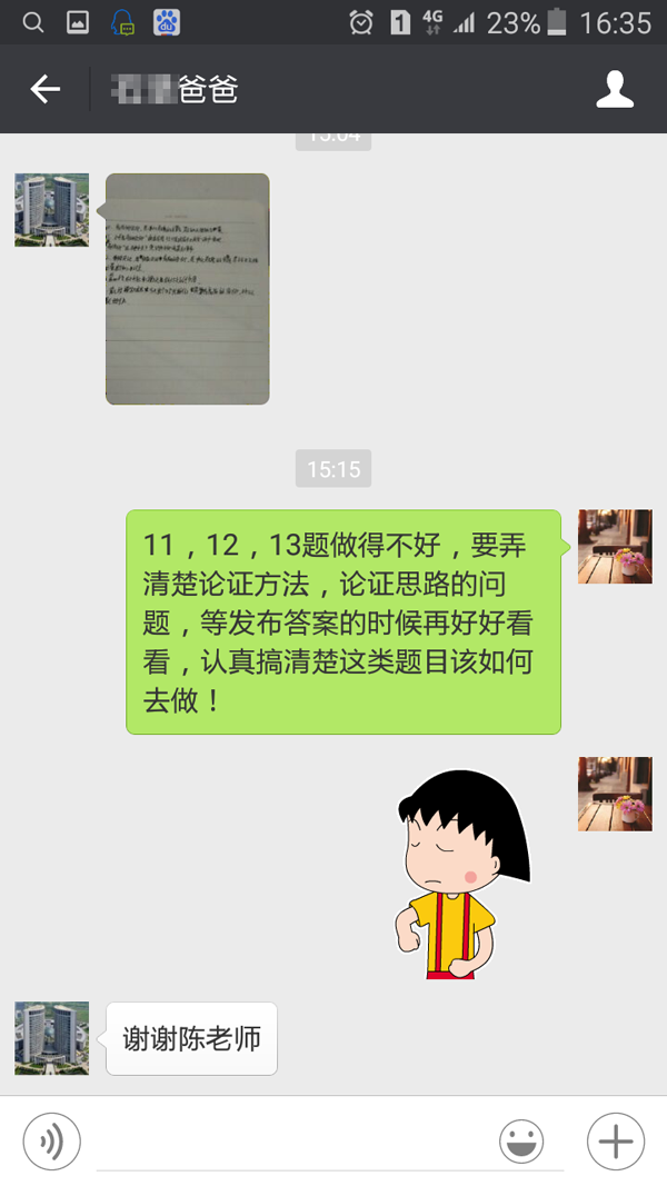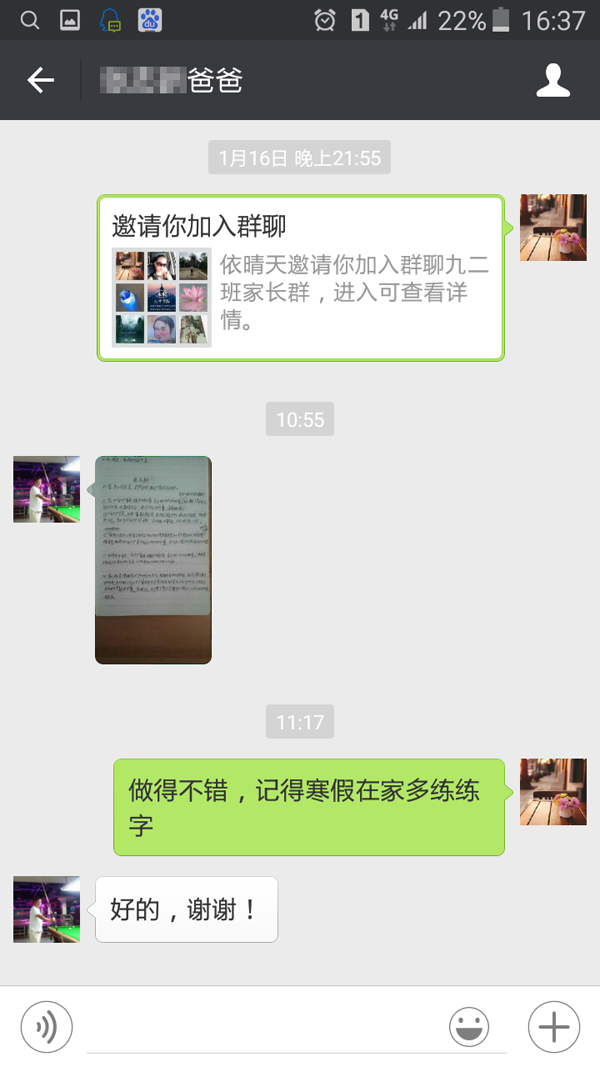 教师与学生家长在微信上交流
