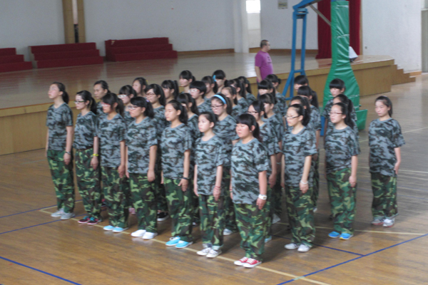 在生机盎然绿草茵茵的校园里,一群群穿着迷彩服的人在咬牙坚持着,也可以看到一张张稚气的脸庞,可是在额头上不断累积成滴的汗水下,那层掩饰的膜似乎被冲淡,露出了坚毅的心。这,就是高中入学必修课——军训。