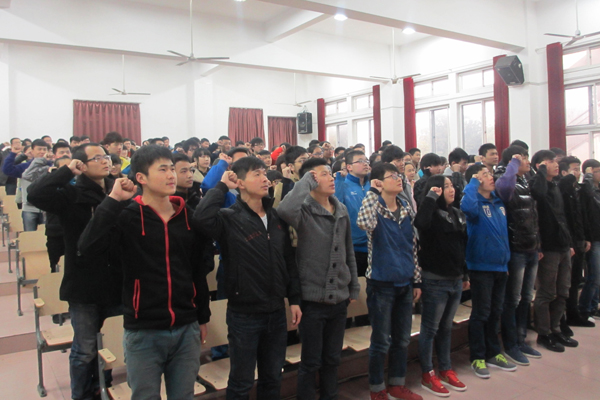 战鼓阵阵催人奋进,誓言声声激荡校园。2月27日下午15:00分,世外2014届高三年级在学校阶梯教室举行了高考百日誓师大会,擂响了高考百日冲刺的战鼓。学校党支部书记、校长邵忠德先生、校长助理张永国、学部主任吴琪琦和高三年级全体教师与200余名学生参加了此次大会。