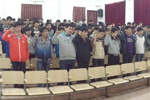 3月16日晚七点十分,在学校阶梯教室召开了高二年级学业水平测试百日誓师大会。高二全体学生及班主任、高二年级组长、学部主任参加了此次誓师大会,为决战2014年学业水平测试(小高考)加油鼓劲。