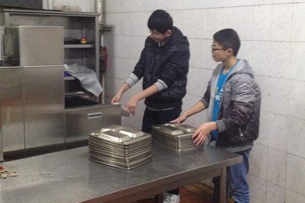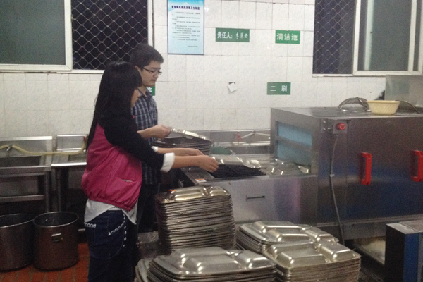 各班的志愿者们更是自告奋勇,积极主动打扫学校食堂,桌椅板凳、门窗玻璃、地板消毒柜,全部责任到人。平时不大注意的死角盲区,成了重点“整治”的对象。大家齐心协力,互相鼓励与监督,经过自己的努力,终于将食堂打扫得清亮整洁。