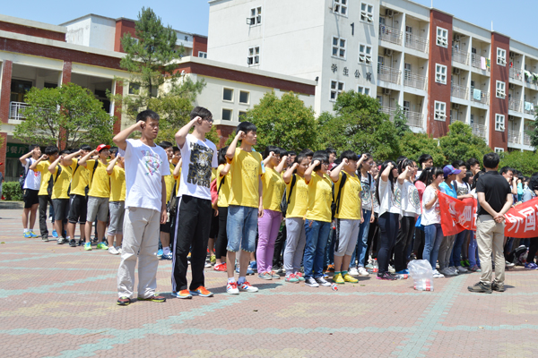5月22日下午13:30,高中部远足活动启动仪式在学校礼仪广场举行,在启动仪式上,邵忠德校长作了激昂的动员讲话,邵校长强调远足既能考验我们的身体素质,又能磨练意志,我们可以流血流汗,但我们一定要坚持,突破自己,勇敢面对,超越自己,同时在拉练的过程中希望同学们相互帮助。高中部吴琪琦主任带领全体学生宣誓,13:50,在三位旗手的带领下,全体学生以班级为单位顺序出发。