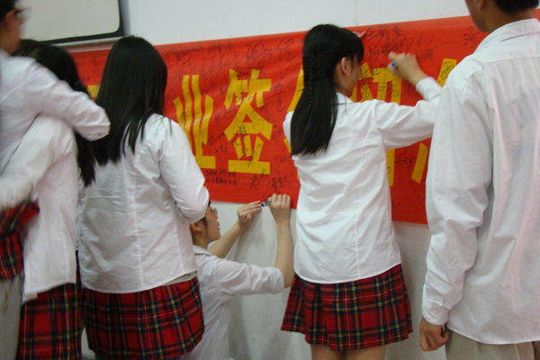 一般来说,离校的学生囿于青年人的好动和临考前的浮躁,加上离别时的复杂心理,多少会情绪激动狂躁,但这里的学生却能像往常一样保持着秩序的稳定、会场的安静和情绪的稳定,着实让人惊讶,很多读者还记得《泰塔尼克号》电影里面的一个场景,在巨轮快要下沉时,音乐演奏者依然镇静地拉着小提琴。这样的场景被导演拿来衬托人类在灾难面前的冷静从容,但那是艺术,而这些学生的这种不因场面特殊而放纵自己的作风,是一种现代文明的体现。