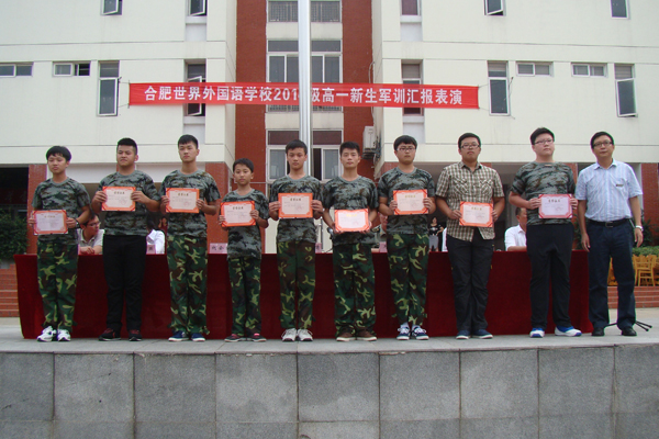 表演结束,针对此次军训,学校集中表彰了一批先进个人和集体,优秀学员、训练标兵、优秀寝室上台接受了学校领导和军官学院领导颁发的荣誉证书。而面对结束的军训,大家都充满不舍和感慨,无论是学生还是学校。学校领导张永国校助,在接下来的讲话中勉励大家,把军训的成果永记心间,在以后学海书山的跋涉中继续发扬这种不怕苦,不放弃的军训精神,一定会在高中三年取得令人满意的好成绩,跨进理想的高等学府。