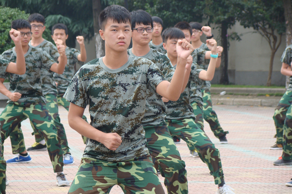 在庄严肃穆的国歌声中,拉开了本次汇演的帷幕。首先,邵校长和秋少校检阅了各个方队,同学们表情严肃,精神饱满,口号洪亮,充分展现了新一届高一新生的精神风貌。紧接着汇报表演正式开始,综合方队表演的项目是单兵动作。单兵动作包括齐步走、跑步分解动作、踢腿动作等,一招一式,通过六天的军训,先前的软弱无力混乱不齐被充满力量整齐划一所代替,学员们的认真投入赢得了现场阵阵热烈的掌声。紧接着是男子军体拳表演,雄壮的《男儿当自强》与男生们的一掌一拳,震天的吼声点燃了整个广场,让所有的观众深受感染。而随后的女子韵律操,充满了青春的活力,动感十足,展现了新一届女生积极向上,活力无限的风貌。最后在整齐嘹亮的军歌《团结就是力量》中,全体大合唱为汇报表演划上了完美的句号。