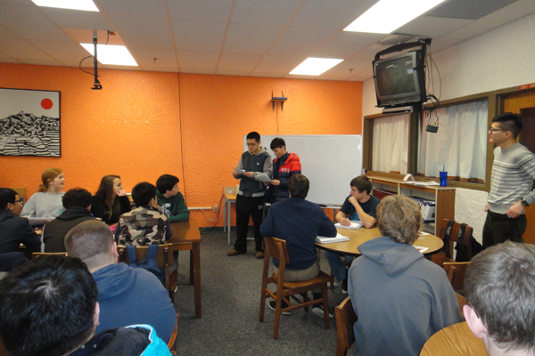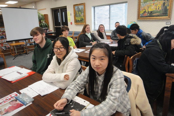 今天是上课的第二天,根据昨天英语老师布置的任务,我们所要做的就是我们所知道的国父孙中山的资料用英文叙述给美国学生听。陈子健、何卓首先进行了精彩地介绍。孙中山的事迹、中国的历史以及何卓在黑板上画的中山装引起了美国学生及老师的浓厚兴趣。因为害怕错过这么好的机会我和王奕蓉主动要求上去进行介绍。美国学生很认真地记着笔记,了解我们国家的历史并提出了很多疑问,我们也当然很高兴地去一一解答,大家都融入了这个课堂,感觉这不像是一节英语课,而是一节历史课。