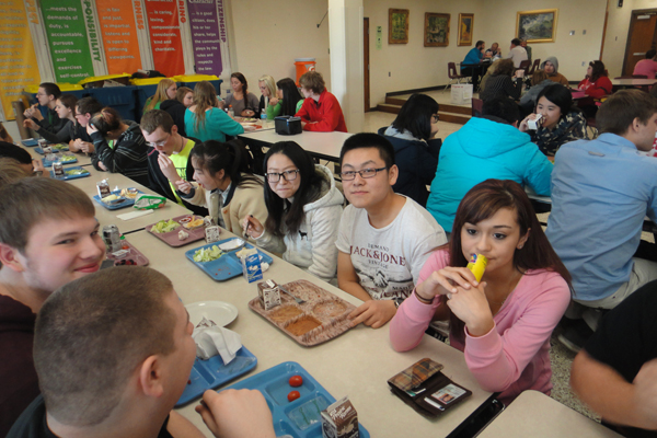 中、美学生在同一餐厅用餐