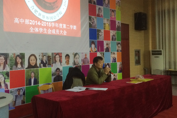 3月12日下午5时许,高中部2014-2015年度第二学期首次学生会大会在校阶梯教室内举行。会议由团委书记姚志华老师主持,高中部分管德育的陈海波副主任对2014年的学生会工作成果等进行总结,同时点明了新学期的新目标,新任务。学生会主席谢康同学发言,他表达了学生会工作热情和学生会工作对自己的锻炼,给予同学们以鼓励。