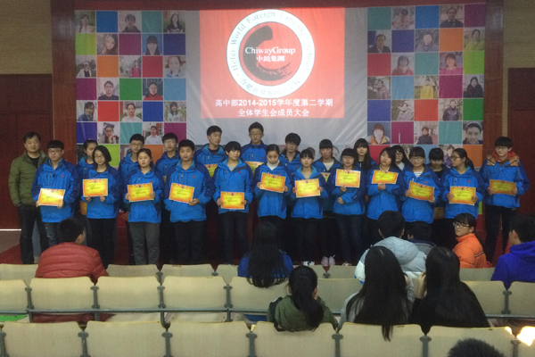 会上,姚志华老师与陈主任一同为刘玉婷、孔婧雯、张逸娴、孙香玉等同学颁发了“优秀学生会干部”奖状。姚老师鼓励在座的同学们,机会都是平等的,每个人都需再接再厉,毫不气馁,才能获得更多的荣誉。最后,姚志华老师再次明确了在2015年度学生会工作的奋斗目标,例如“学习雷锋好榜样”、“高中部跑操比赛”等等,令人满怀憧憬的相关活动。