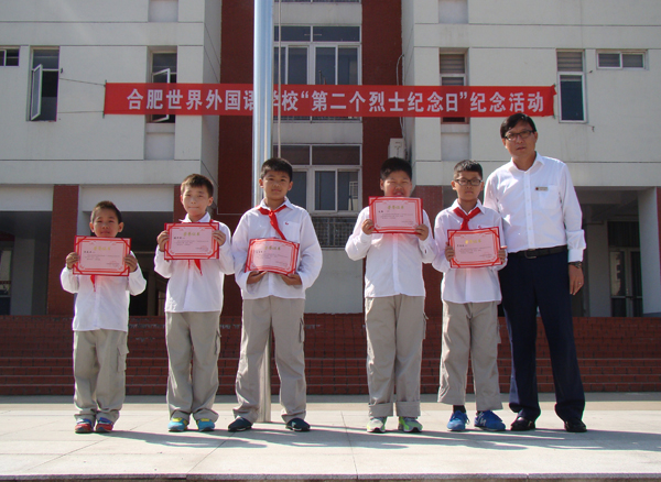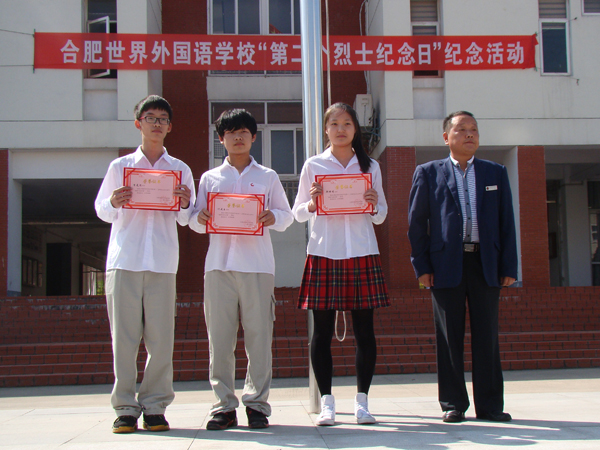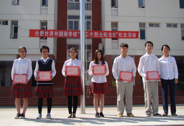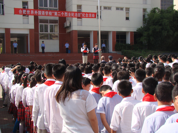 2015年9月28日上午九点半,高二文科班主持了本次全校“庆国庆暨第二个烈士纪念日”升旗仪式。9月30日是我国第二个烈士纪念日,10月1日是我们伟大祖国的66岁华诞。为了实现民族的独立和解放,为了使祖国走向繁荣和富强,一代又一代的中华儿女,在革命斗争和社会主义建设中,前仆后继,英勇牺牲,用鲜血和生命谱写了惊天动地、可歌可泣的壮丽诗篇。英魂虽逝,精神犹存。今天我们在这里祭奠革命先烈,就是要继承革命先烈的遗志,发扬革命先烈的光荣传统。升旗方队由高二文科班组成,国歌响起,全体肃立,注视着五星红旗冉冉升起,充满着对国家的热爱和对烈士的崇敬之情。