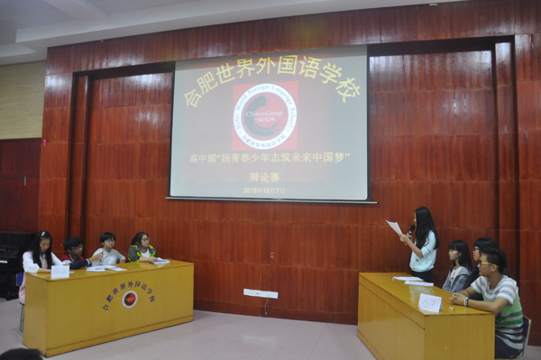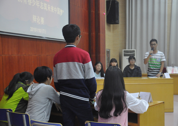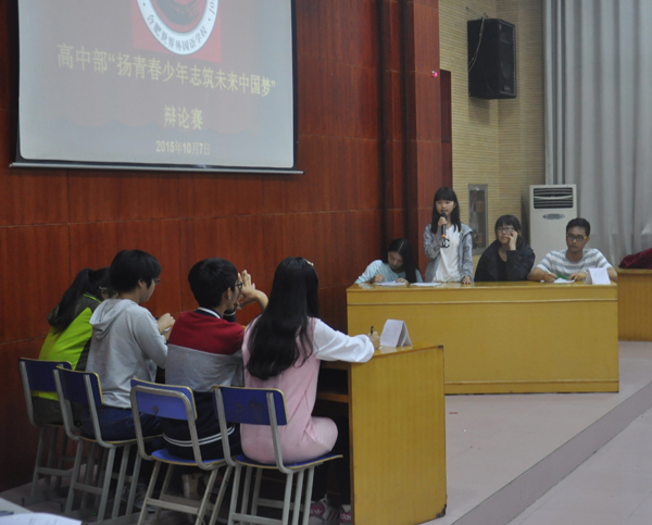 10月7日晚上7点,我校高中部在校阶梯教室举行学校首届高中生辩论赛,学部吴琪琦主任、陈海波副主任和高一王进传组长、高二何永松组长及语文组老师担任本次比赛评委。