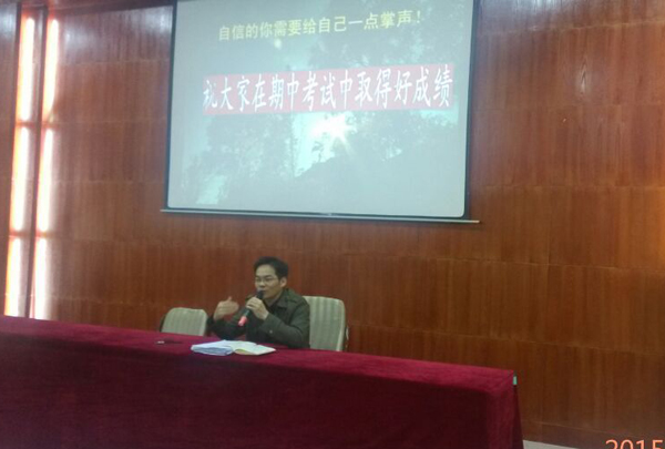 分管德育的陈海波副主任总结了近期高二学生德育方面工作,对并布置了下一阶段工作。接着何永松组长给做了期中考试的动员,从一道心理学的选择题开始,引出考试应该具有什么样的心态,《羚羊和狮子》的故事中给后进生鼓励,告诉大家:一、调整心态,压力面前人人平等;二、天道酬勤,努力真的很重要;三、做一次认真的复习,挑战一下自己;四、考试需要诚信;五、温馨提示,考前的准备工作。得到了同学们的积极响应!