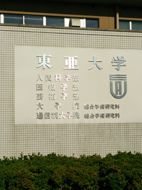 早上,我们坐了两个小时的车,来到了东亚大学,这个大学非常漂亮,学校的领导们很热情,但是我们可能是第一次到这样的场合,所以有点紧张,学校的校长说,我们有点板着脸。
