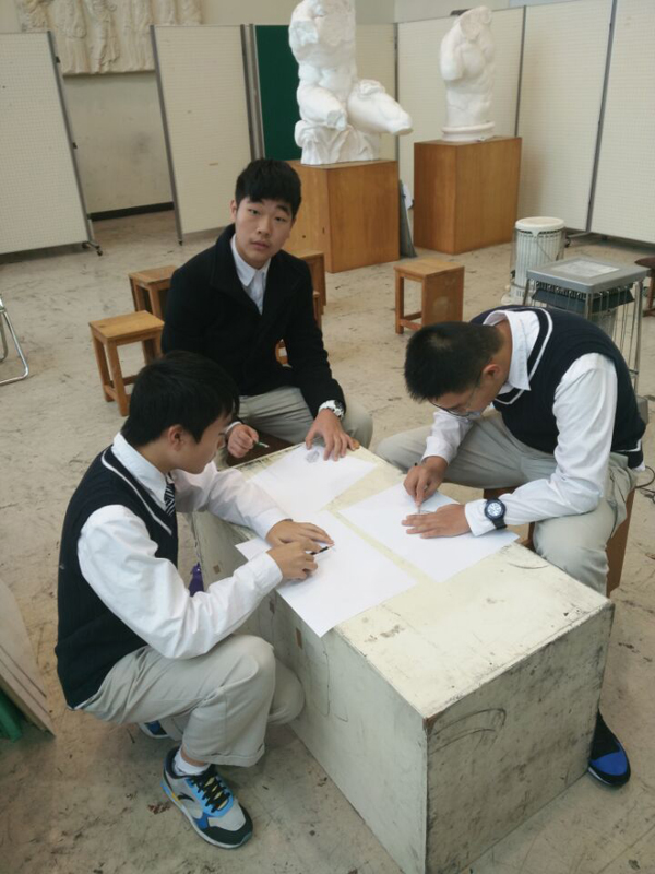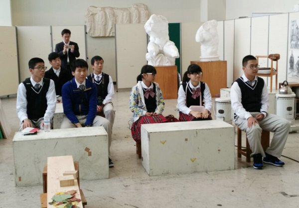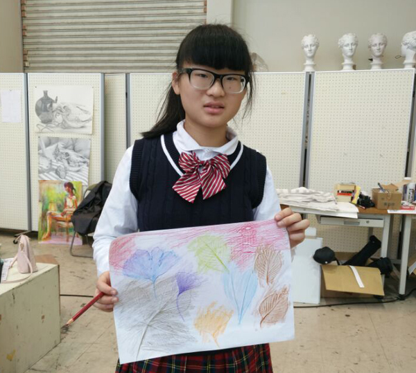 在东亚大学我们体验了日本学校的课程,第一节是艺术课,日本老师教我们拓印的方法来作画,我的画显得很乱,不过老师看到后评价很好,说是爆发的艺术。中午我们与两位中国留学生一起吃饭沟通了解更多关于留学、日语学习、大学生活。