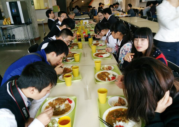 下午我们上了一节日语课,由于我们的日语口语的基础掌握的还不很牢固,老师表达的有些内容听起来还很吃力。下午最有意思的就是柔道课了,铿锵有力的吼声,一声声震耳欲聋的击打声音。练习结束时有一位同学问:“他们摔倒疼不疼”。东亚校方说他们在小学已经开始训练所以已经感觉不到疼了,正所谓台上三分钟,台下十年功啊。