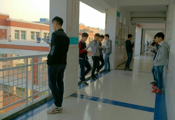 清晨,教学楼的走廊上,随处都能看到朗读的学生