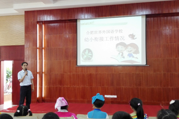 6月5日下午,合肥世界外国语学校幼儿园两个大班的幼儿在我校阶梯教室举行了“幼小衔接结业典礼”。这个毕业典礼预示着大班的孩子们们要正式迈上学习道路,迎接崭新的未来。