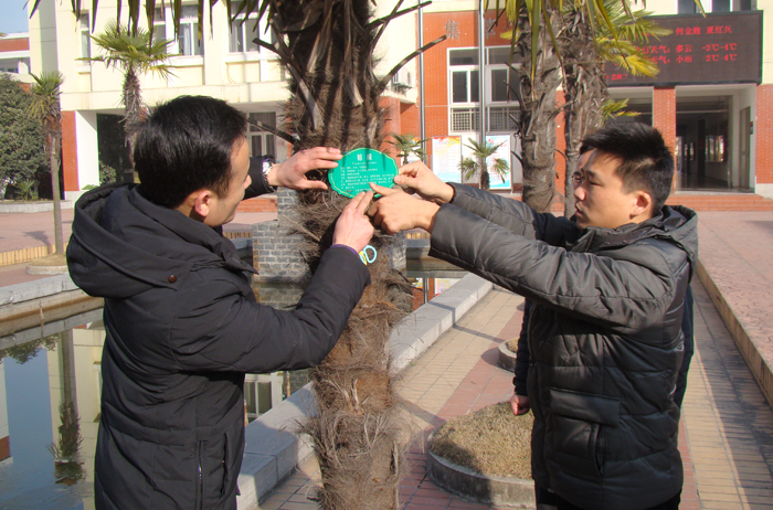 此次挂牌活动酝酿良久,大家分工合作,辨认植物,确定“身份证”内容,逐一为全校植物挂牌注名。后期还将不断开展对校园植物文化的维护和提升活动。