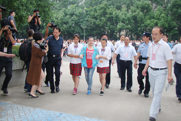 合肥市政府、市教育局、市考试院对盲人高考的组织工作高度重视,将盲人考场安排在合肥世界外国语学校考点。6月6日吴春梅副市长亲临世外考点查看盲人考场准备情况,在市教育局、市考试院的的关心、关注下,合肥世界外国语学校考点围绕盲人考场做好了充分的保障和预案。6月7日一早,经开区管委会王家和副主任亲临现场指挥,世外学校两名学生志愿者早早守候在校园门口,等待盲人考生王香君到来。8:20左右,香君在母亲陪同下来到世外考点,两名志愿者快速上前,搀扶着香君,缓步走进世外校园。主考邵忠德校长和副主考王宏锦校长全程陪同香君走进考场。