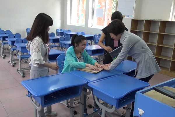 王香君是全省唯一一名盲人考生,考场中只有她一名考生,在考场布置中考点为她做了充分考虑。为了不让她有孤寂感,考场中保留了标准的30套桌椅。在她的座位旁边保留了较宽的通道空间。由于盲文试卷幅面宽,页数多,监考教师将三张课桌并在一起供她使用。鉴于盲文试卷阅读和答题的特殊性,香君的考试时间比普通考生多了1/2的时间,这对考生和监考老师都是一个意志力的考验。中午12:45,王香君的第一场考试结束,她面带微笑的走出了考场。