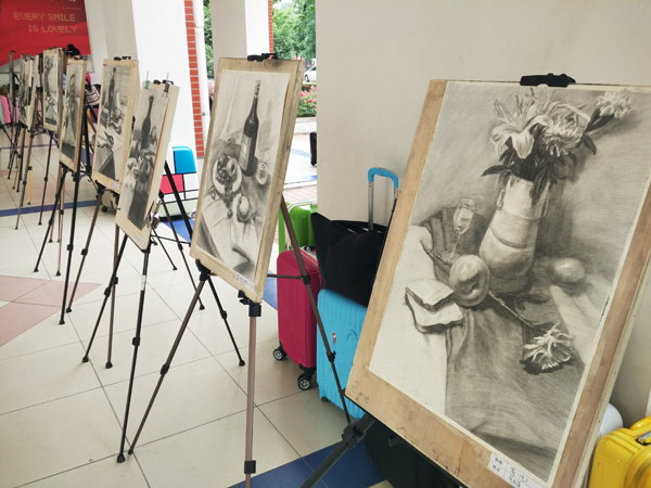 本次家长会最让人眼睛为之一亮的要数艺术班(美术)作品展示。从作品质量上看,内容丰富,形式多样,风格各异,各有千秋。一幅幅优秀的作品给广大师生和家长带来一场艺术的气息,给整个校园带来一副生机勃勃的画面。开学至今,他们的美术水平并没有我们期待的那么高,但他们对美术的理解以及热爱是写在他们脸上,存在他们心底的。他们的选择无疑使正确的。美术绘画展是对自身的一个总结,也是一个新的起点,我们有理由相信艺术班的学生在今后会做出更多的优秀作品展,表现得更出色!
