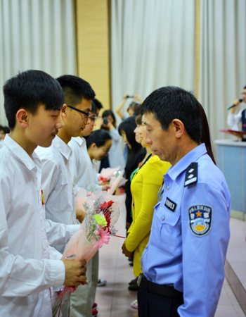 仪式第一项,由家长代表戴思亮先生讲话。戴思亮先生是一名人民警察同时也是我校法制副校长。他从法律角度为在场同学们解读了18岁意味着什么。他说:18岁,从今天开始,你们就是中华人民共和国的一名公民了,你们犯的过错将要由自己负上法律责任,你们获得的荣誉也将是国家获得的荣誉,你们要肩负起建设社会主义伟大强国的责任。