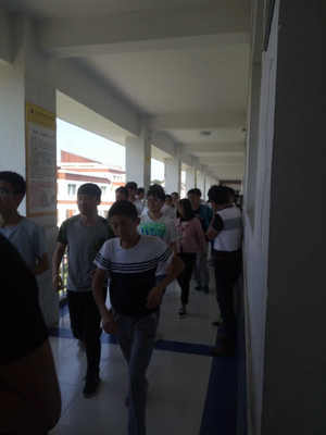 14:35分,演练警报声响起,各班班主任组织学生紧张有序地撤离到安全避难场所,各班开始清点人数并上报学部,随后对演练进行总结。