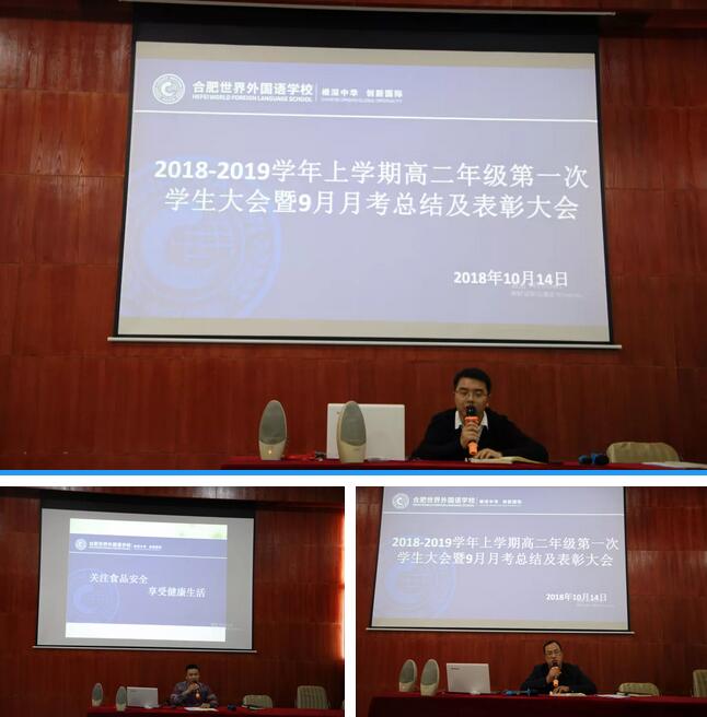 其次,副主任何永松对高二年级近一个月德育方面出现的问题包括寝室、卫生、纪律、德育等方面进行了总结,并就后续改进措施提出了个人的建议。会中,何副主任就食品安全问题做了精彩的专题讲座,在座学生获益良多。