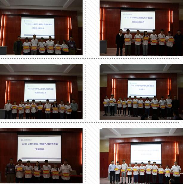 年级组对本次月考成绩突出的同学进行了表彰。年级总分前5名10人,高中部主任陈海波为成绩优异者颁奖;单科第1名共11人由张副主任颁奖;班级总分前3名共18人由各班级班主任颁奖。文明寝室7人由何副主任颁奖。