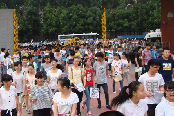 6月16日上午10:30,2015年安徽省初中毕业学业考试合肥世界外国语学校考点考试结束铃声响起,1100多名考生上交最后一科英语答卷,顺利完成考试。