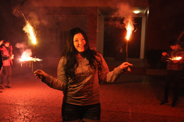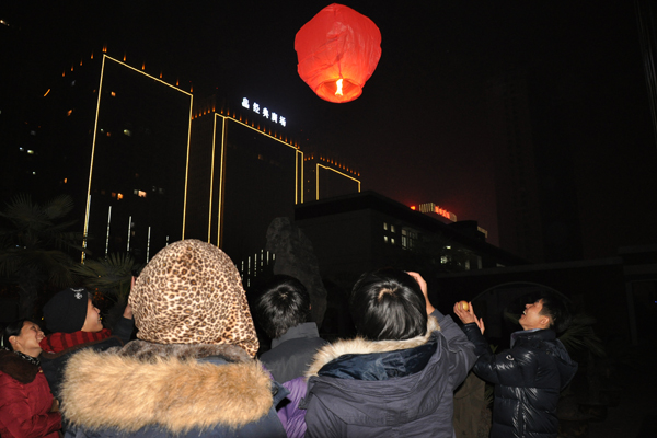 晚会接近尾声,大家来到户外广场,燃放焰火,放飞许愿灯。焰火转瞬即逝,欢乐只会永恒;许愿灯高高远飞,祝福永伴左右。