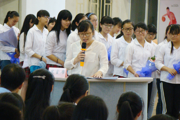学生代表的发言表达着对家长、对老师、对母校的感恩之情,而教师代表项婕的发言饱含感情,深情地回顾了师生们共同度过的三年里许多生动细节和精彩瞬间,希望毕业生们牢记校训,发扬母校精神,为自己人生添彩,为自己家庭增光,为母校辉煌添砖,为社会进步加瓦,使每个人的生活历程成为一篇动人的故事。邵校长在讲话中代表全校向2015届全体同学顺利完成初中学业表示热烈祝贺。他指出,学校会一如既往地关注毕业生的成长和进步,世外永远是毕业生的精神家园和坚强后盾,真诚地欢迎学生们常回母校看看。师生谊伴随音乐在现场真切地涌动着。