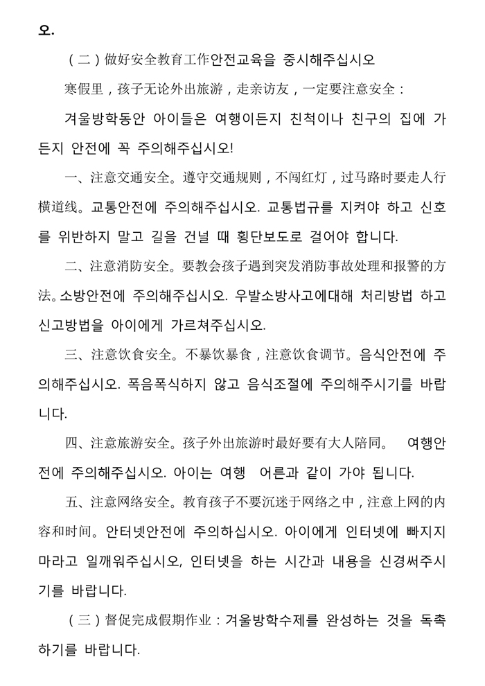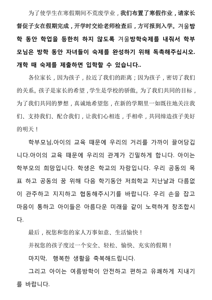 国际小学部寒假致家长的一封信