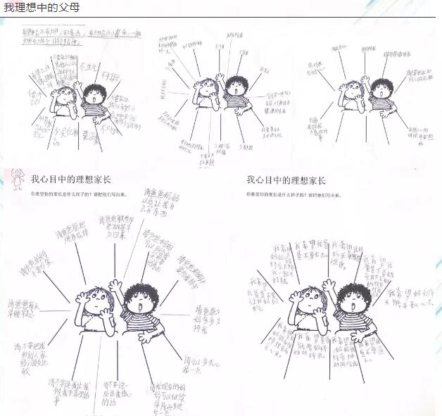 在每位家长手上的工作坊手册中,都有这样一个问题:我理想中的孩子。针对这一个问题,家长们都进行了认真的思考,并且快速写下了自己的想法,在家长们都以为要再次分享想法时,班主任们给他们准备了一个“惊喜”。各班班主任将一张张神秘的纸张发放到了家长们的手上,这是周三周四的课堂上,孩子们提前在纸上写下的“我理想中的父母”。当看到孩子们的想法时,有很多家长悄悄地红了眼眶并偷偷的抹眼泪。