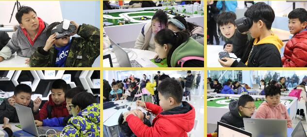 虽然天空飘着蒙蒙细雨,但是孩子们的兴奋却依旧没有受到天气的影响。刚到目的地,孩子们的目光就被门口摆放的巨大的大黄蜂机器人吸引了,一个个都发出了惊讶的感叹声。在讲解员耐心的解说与指导下,孩子们体验到了神奇的重力小游戏,试戴了令人惊叹的VR眼镜,还和小伙伴们一起进行了简单的编程小游戏。这样的动手操作让孩子们直观感受到了科技的魅力。
