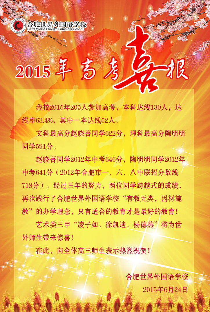 合肥世界外国语学校2015年高考喜报