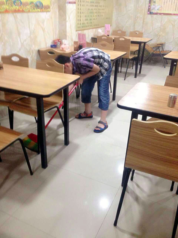 孙琪华在爸爸的饭店里当服务员