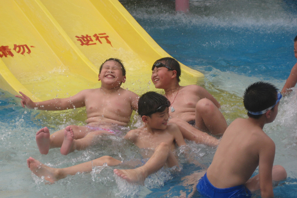 人群中不时听到这样的对话:“水世界好玩吗?”“最好玩啦,昨天我们可高兴了!”第一批同学打开话匣,如数家珍般介绍起来。水是夏天最好的伙伴,玩水必到观音山水世界,这里是孩子的乐园,大人也能在这里找到童年。一进园区,眼前便涌进一群群轻快靓丽的身影!换好泳装的同学们迫不及待的加入玩水的行列中。浅水区里的长滑梯是孩子们的最爱,上下几十次也不说累!一个个的变成活泼机灵的小鱼在水里穿梭着,欢笑着;站在喷泉下仰起小脸,露出惊喜的神情,又蹦又跳的孩子尽情享受水带来的乐趣。这不,看到对面的同伴游泳,他们又飞快的跑过去,扑在水中,划动双臂,畅快地游着,女孩们学起花样游泳,摆着各种造型;男孩子各自比试速度以及潜水的本领,胆大的同学跑到疯狂漩涡边,准备体验冲浪的刺激。大人们也不甘示弱,与孩子一起疯狂。温馨热闹的水世界成了欢乐的海洋,顾不上看前方舞台上的精彩表演,每个人都融在水中,畅快淋漓!