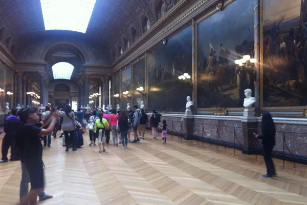 以上是徐嘉锐所看到的凡尔赛宫。参观凡尔赛宫的确是一种艺术享受,即使走马观花,但是一路下来震撼无比。其建筑造型轮廓整齐、庄重雄伟,被称为理性美的代表,内部装潢以巴洛克风格为主。风格独特的“法兰西式”大花园,院内树木花草别具匠心,使人看后顿觉美不胜收,完全人工雕琢,呈现出对称和集合图形化。凡尔赛宫内部陈设富于艺术魅力,豪华富丽,当我们走进大理石院和镜厅时便深深感受到了。当然,宫内也陈设这来自世界各地的珍贵艺术品,当我们在里面开展“寻找中国珍品”游戏时,由于时间和游人过多,很遗憾,我们没有发现,期待下次再来。