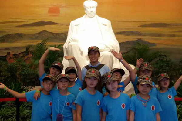 “太阳最红,毛主席最亲,你的光辉思想永远照我心…… ” 游览了毛主席故居,参观了毛主席图书馆,聆听着导游介绍着主席的生平故事,孩子们对伟人的仰慕之情油然而生,不禁大声地唱了起来……