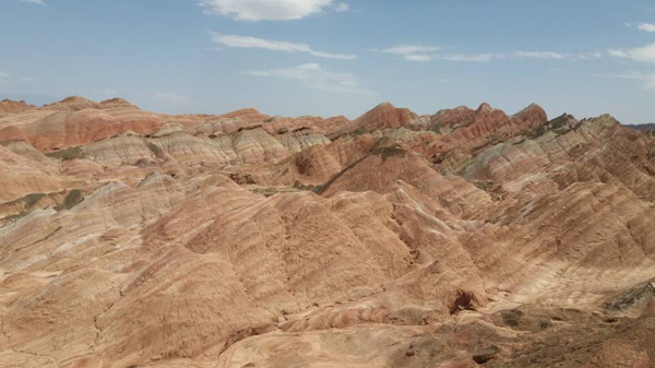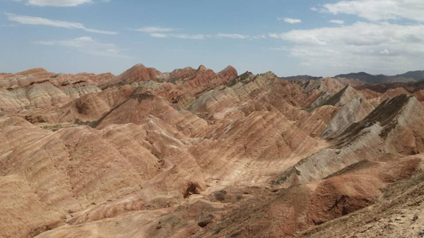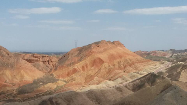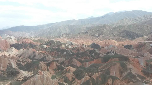 吃过早饭后,去看张掖七彩丹霞地貌,大约3小时到了张掖七彩丹霞,坐上观光车,师傅带我们去了第一个观景台,刚看到点彩色岩层的时候开始激动起来,张掖的丹霞地貌它不同于一般意义上的丹霞那种单纯的红色,而是多彩的七色丹霞,红的似火,青的靛青,形态各异,各种形态鬼斧神山,浑然天成。被称为上帝的调色盘,当到达第一观景点看台时,实在无法想象天下还有这等奇观。