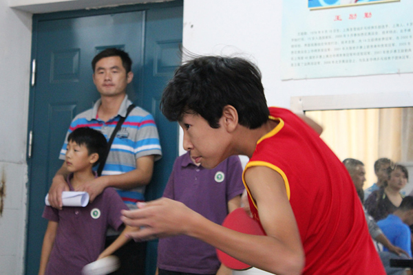 这天清晨小学部兵乓球台上出现了三个男孩和一位老师,他们顶着微蒙蒙的雾气训练着,他们就是奋战了多月的小学部乒乓球代表队——主教练:范慧慧,队员:权勇成(韩国籍)、严飞扬、张天赐。他们充满了信心,时不时的做个鬼脸,开个玩笑,空气中洋溢着欢乐!但是当他们踏上赛场时,孩子们满脸严峻,严谨自信。的确,整场比赛下来,敌手众多,他们必须严肃以待,更要迎难而上,无所畏惧,分分必争。特别是权勇成同学面对最后一场冠军争夺战,他敢打敢拼。每一次进攻都是势不可破,每一次防守又是严阵以待,面对裁判的误判,他据理力争,赛场上为他响起了阵阵掌声。而这一切是范教练场权勇成,加油鼓气的作用。只见啪的一声重扣!他们拿下了这枚金牌!掌声雷动,孩子们激动拥抱,这是汗水换来了成果!